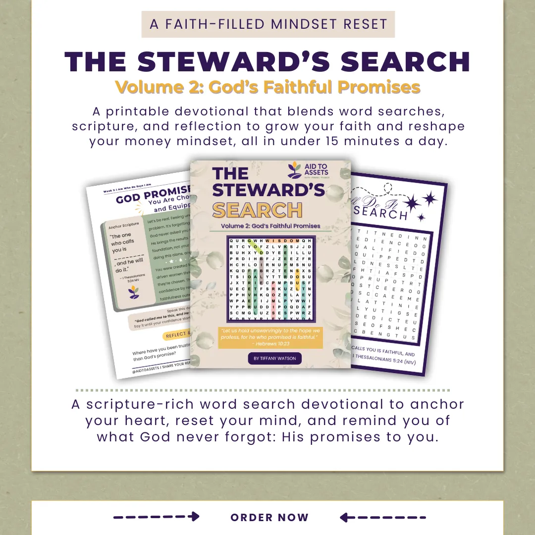You’re moments away from unlocking The Steward’s Search: Financial Faith Edition. 21 word-search devotionals designed to renew your peace, reshape your money mindset, and draw you closer to God in the process.